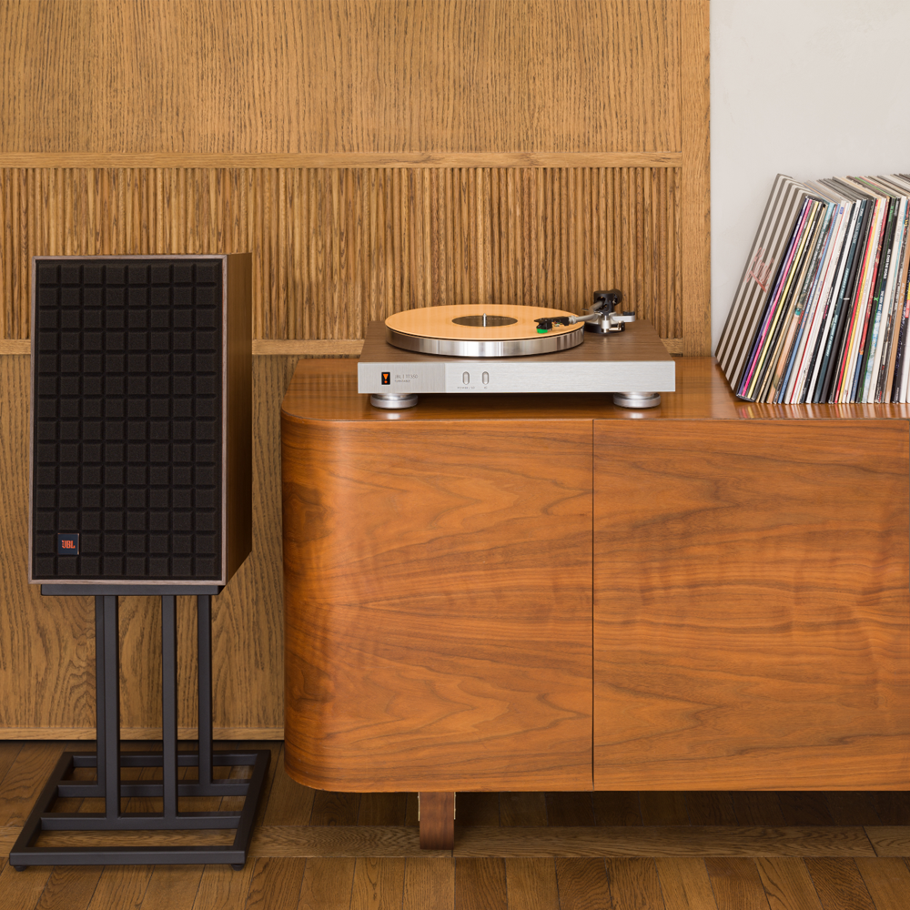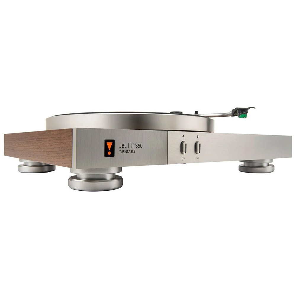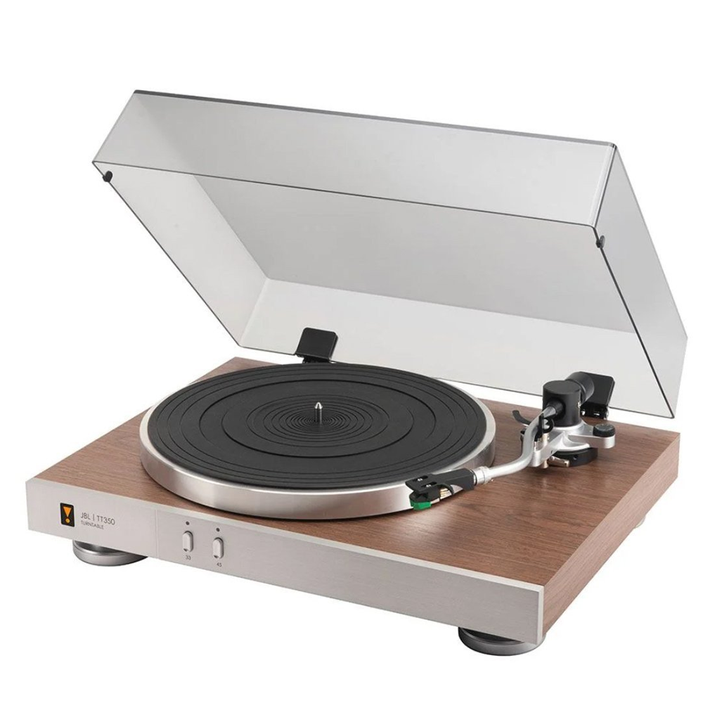 Станьте ближче до своєї колекції платівок з JBL TT350 Classic. З твердим горіховим корпусом, важким алюмінієвим верстатом та зігнутим алюмінієвим тонармом, TT350 Classic є свідченням радості музики та вінілових платівок.