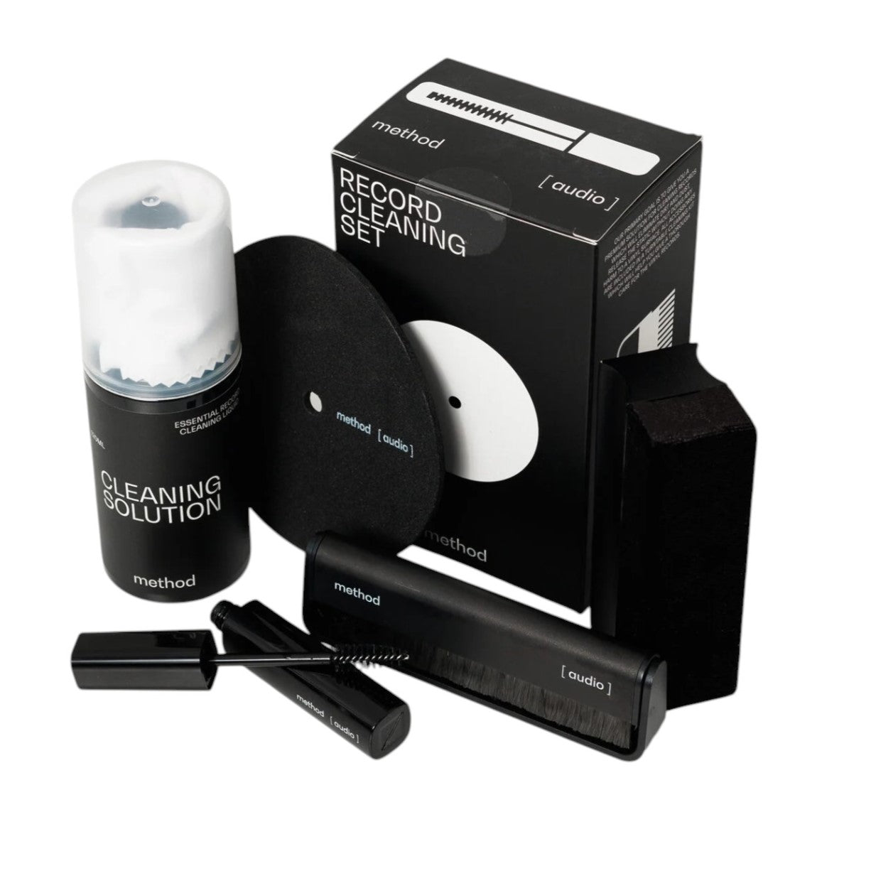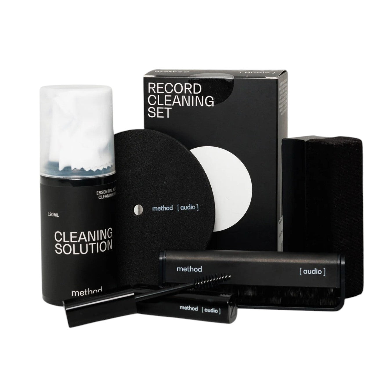 У набор входить все необхідне для щоденного догляду: спеціальна антистатична щітка, мікрофіброва серветка та очищуючий розчин, безпечний для поверхні вінілу. Засоби розроблені таким чином, щоб не пошкоджувати канавки платівки й водночас повертати їй первісну чистоту.