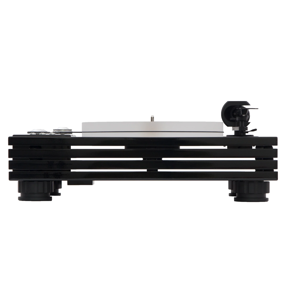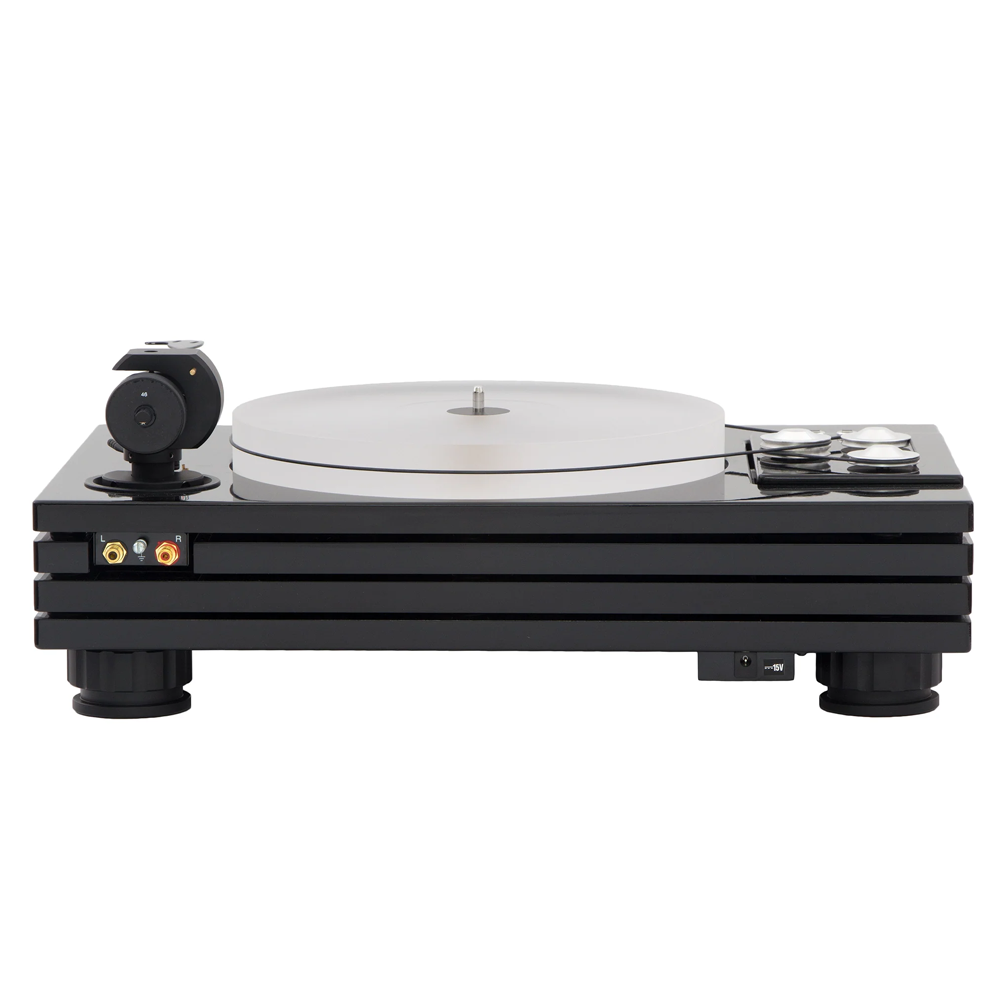 Мікропроцесорне керування швидкістю, подвійний пасовий привід із маховиком, регулювання VTA й азимуту, а також карбоновий тонарм Evolution на підшипниках ABEC 7 забезпечують точне, глибоке звучання. Внутрішня проводка — з чистої міді.