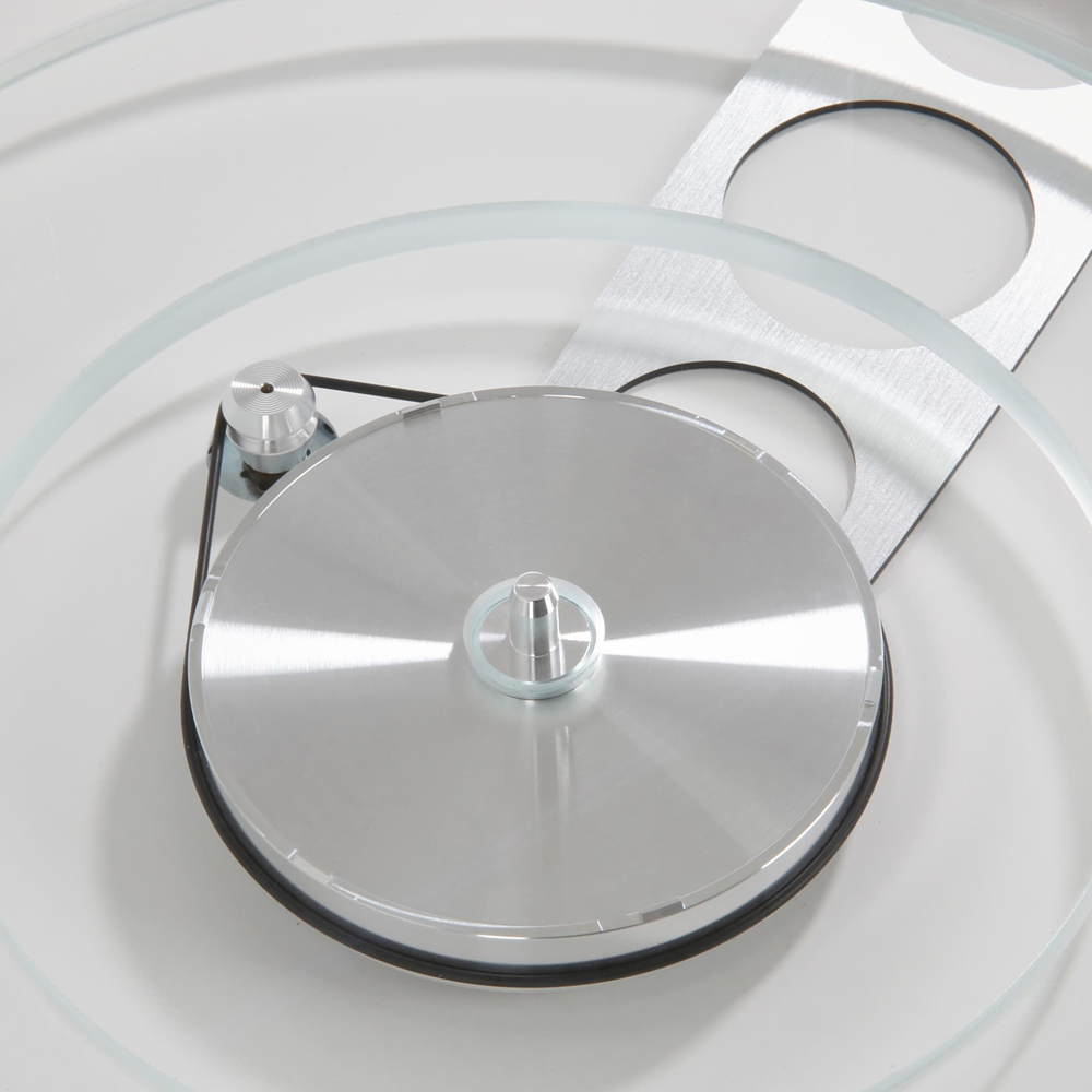 Програвач оснащено субдиском з цільного алюмінію, точно налаштованим 24-вольтовим двигуном із пасовою передачею. Зовнішній блок живлення Neo PSU з кварцовою стабілізацією формує точну синусоїду з мінімальним рівнем шумів (до 0,15%), що знижує вібрації і покращує звук.
