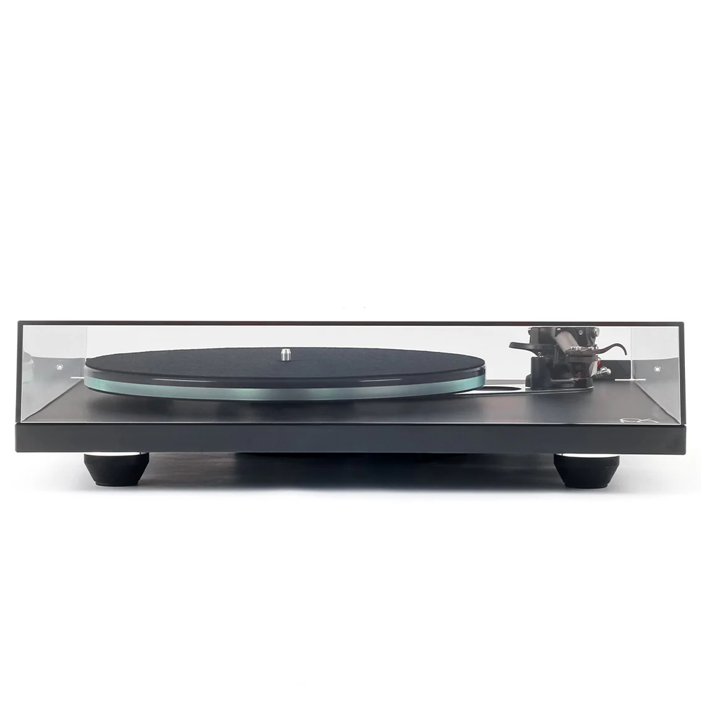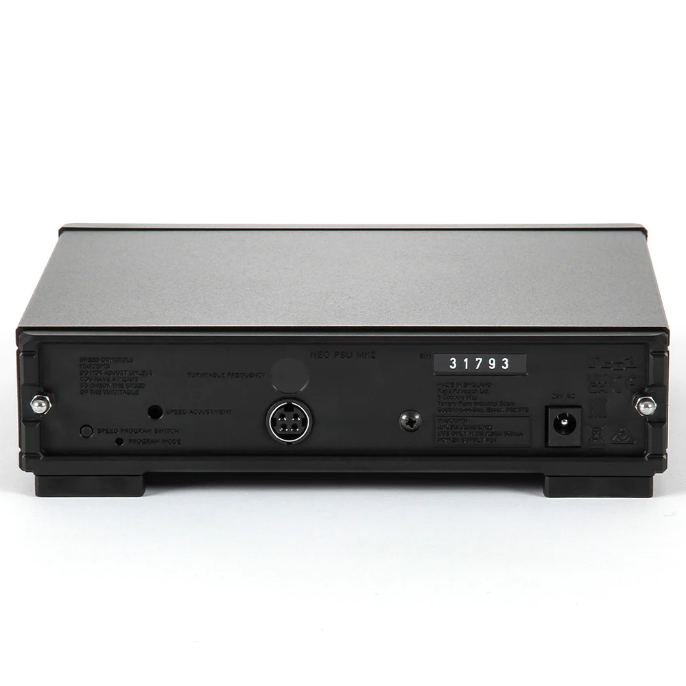 Всередині програвача — точний алюмінієвий субдиск, надійний 24-вольтовий двигун із пасовим приводом і зовнішній блок живлення Neo PSU. Завдяки кварцовій стабілізації частоти ця система забезпечує точне обертання диска, знижує вібрації та усуває вплив електричних перешкод зі звичайної розетки.