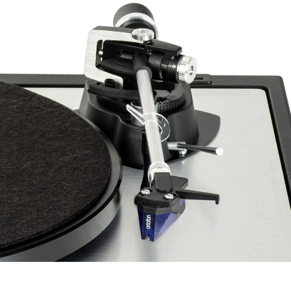 REKKORD AUDIO M500 (2M Blue) — це високоякісний настільний програвач вінілу для аудіофілів, зосереджений на точності і деталізації. Він має систему субшасі з параболічними пружинами, що ізолює тонарм і диск від зовнішніх вібрацій. Алюмінієвий тонарм довжиною ~8,3 дюйма з кардановим підшипником, жорсткий карбон-шедл і ремінний привід з плоским обтяженим ременем забезпечують стабільність і контроль у відтворенні. Комплектація включає фабрично встановлений звукознімач Ortofon 2M Blue — MM-картридж, який характеризується чітким, широкий звуковим полем і високою деталізацією середнього та високого діапазонів.
