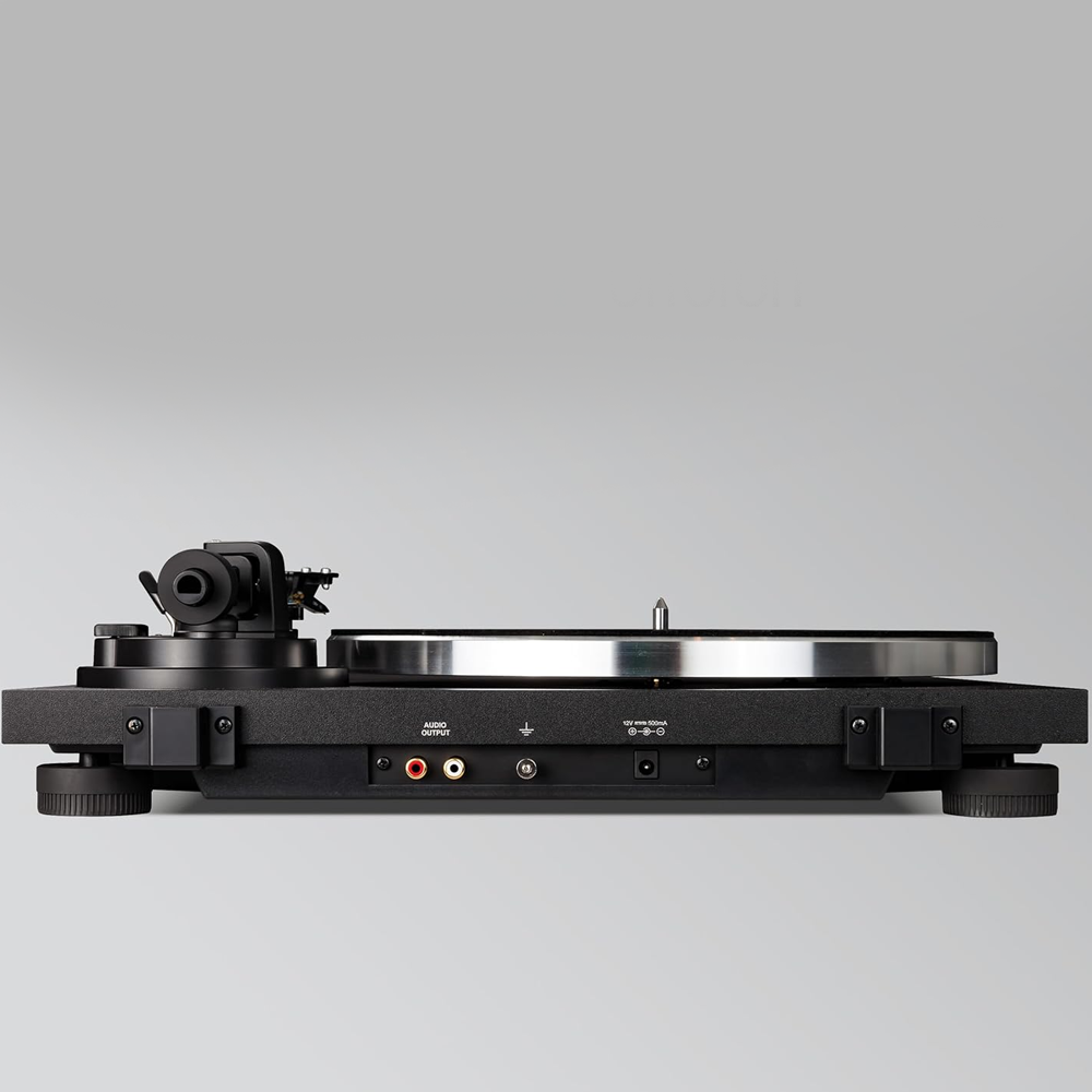 Точний ремінний привід програвача TURN2 забезпечує стабільне обертання платера з мінімальними вібраціями та коливаннями, що гарантує чисте і рівне звучання. Вбудований двигун постійного струму працює надзвичайно тихо — його майже не чутно, тож TURN2 ідеально підходить як для насолоди улюбленою музикою, так і для використання в спокійній атмосфері домашнього інтер’єру.