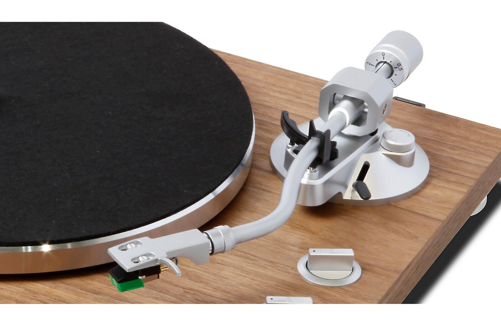 Модель TEAC TN-400BT оснащена MM-фонокоректором, що відключається, в якому використовуються високоякісні комплектуючі, в тому числі аудіофільський операційний підсилювач компанії New JRC. Є інфразвуковий фільтр, що дозволяє позбутися низькочастотного шуму, який утворюється, наприклад, при програванні викривлених дисків. Для захисту від пилу передбачено прозору кришку, яка кріпиться до корпусу за допомогою петель. Вертушка укомплектована статично збалансованим S-подібним алюмінієвим тонармом зі знімним шеллом, системою антискейтингу та противагою, що дозволяє регулювати притискну силу голки. Тонарм забезпечує високу точність відстеження доріжки диска та комплектується встановленим MM-картриджем Audio-Technica AT95E з легким алюмінієвим голкотримачем.