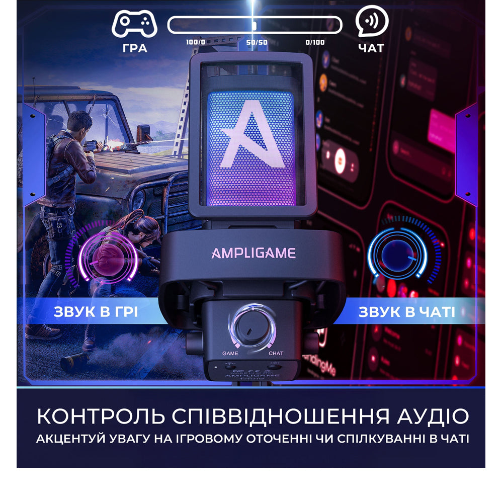 Функції — сенсорний mute з LED-підсвіткою, регулятор гучності/балансу чат/гра, вихід для навушників без затримки