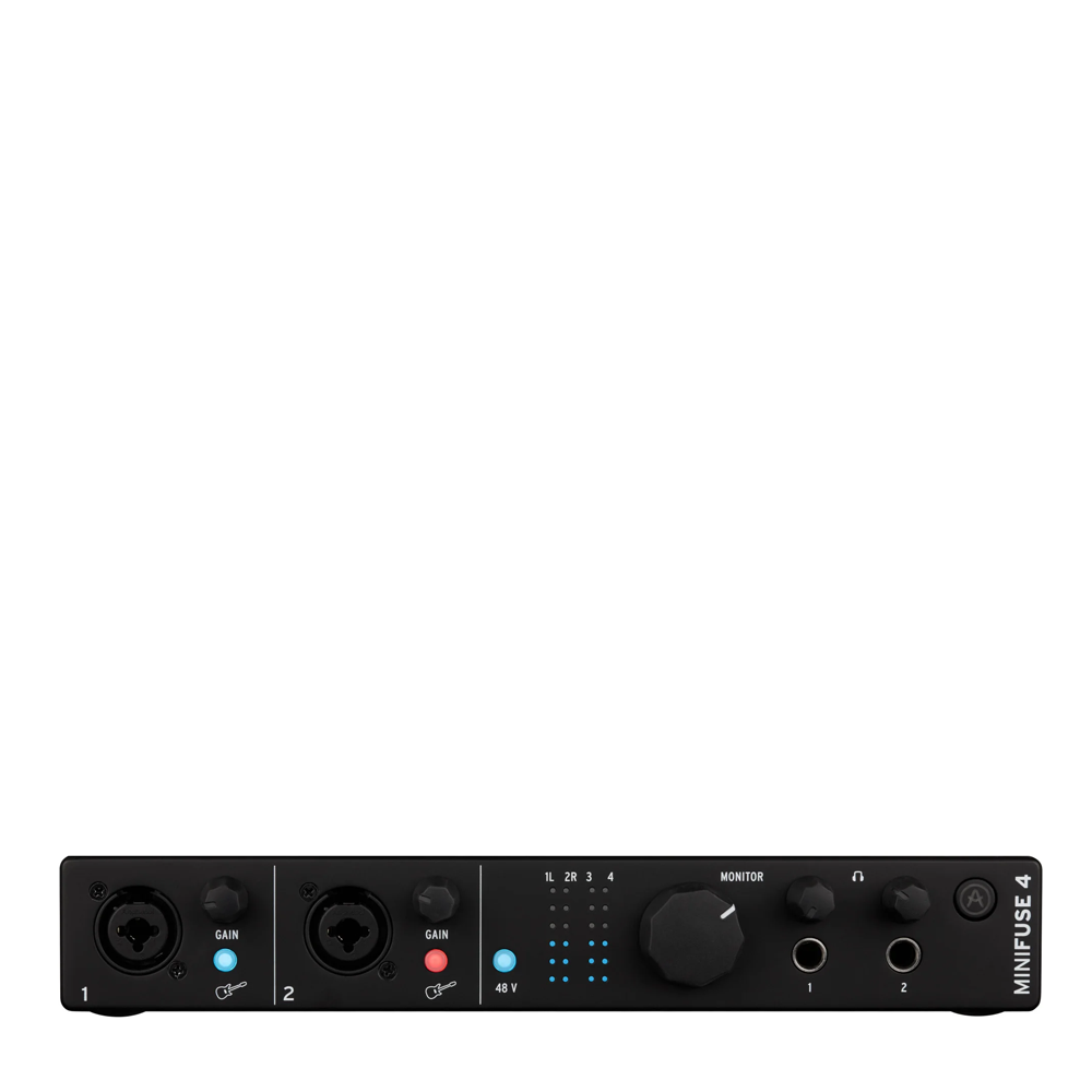 Arturia MiniFuse 4 — портативний, міцний і стильний аудіоінтерфейс з відмінним співвідношенням ціни та якості. Завдяки високоякісним компонентам і передовим технологіям він забезпечує професійне звучання з динамічним діапазоном до 110 дБ і низьким рівнем шуму (-129 дБ). Підходить як для початківців, так і для професіоналів: від запису першої пісні до мікшування та мастерингу.