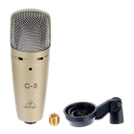 Модель оснащена металевим корпусом і XLR-роз’ємом позолоченого типу для надійного підключення до аудіоінтерфейсу або мікшерного пульта. У комплекті йде тримач для мікрофонної стійки та кейс для зберігання і транспортування. Behringer C-3 підходить для домашніх і напівпрофесійних студій, а також для використання на живих виступах.