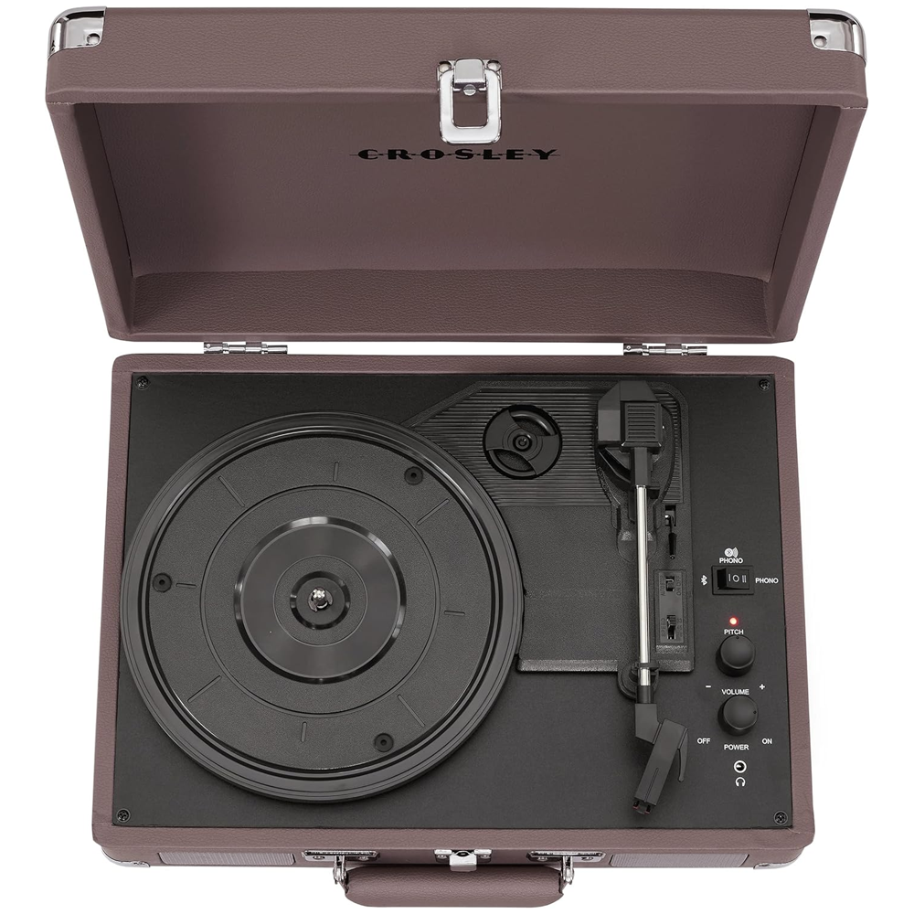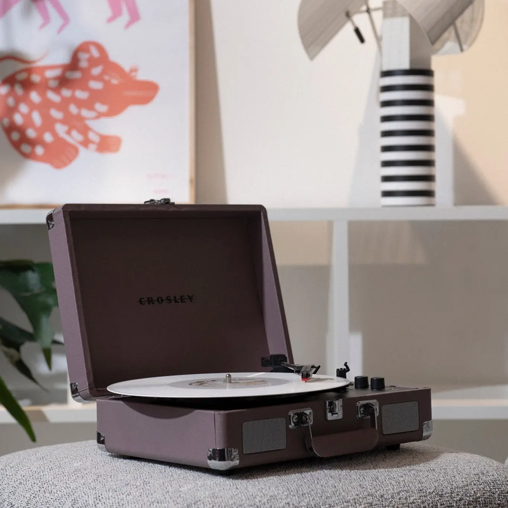 Представляємо Crosley Cruiser Deluxe ! Цей програвач, як і раніше, має чарівний корпус у вигляді валізи, але тепер ви можете налаштовувати швидкість запису за допомогою розширених налаштувань управління висотою звуку або легко синхронізуватися зі з'єднанням Bluetooth і транслювати цифрову музику прямо через вбудовані динаміки. Влаштовуйте джеми один на один з роз'ємом для навушників або під'єднуйте динаміки через порти RCA, щоб звучати голосно. Виберіть з веселки звуків, щоб почати свою пригоду з вінілом з цим портативним трьохшвидкісним програвачем.