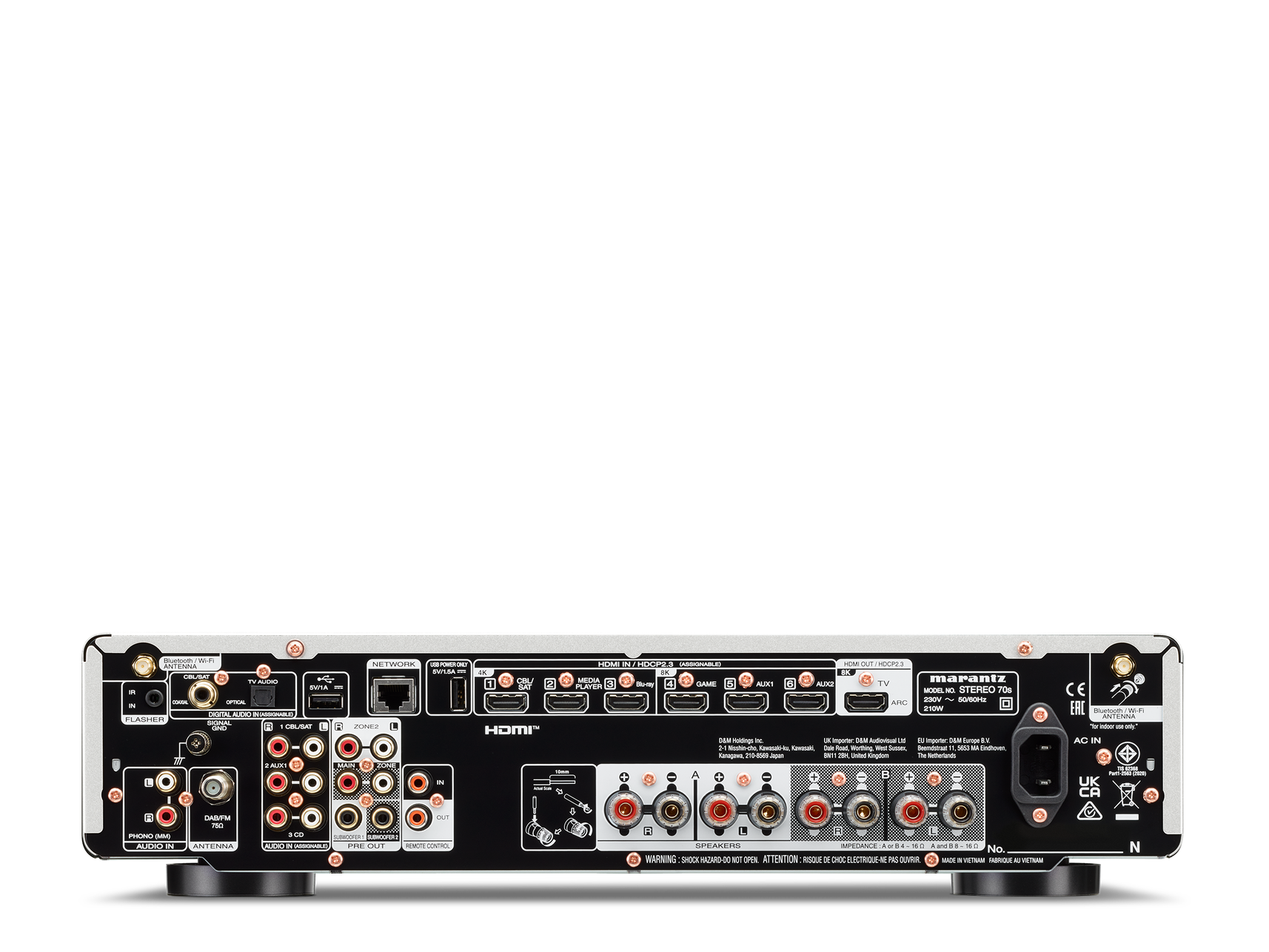 Marantz Stereo 70s Silver Gold — сучасний стерео-ресивер Marantz, який поєднує 2-канальне Hi-Fi звучання з HDMI-підключенням та мережевими функціями. Модель створена для тих, хто хоче якісний стереозвук у вітальні, але без складної багатоканальної системи: підключаєш акустику, телевізор через HDMI ARC і отримуєш відчутно кращу деталізацію, динаміку та контроль басу. Подача комфортна і музична, з чіткими діалогами у фільмах та хорошою сценою у музиці.