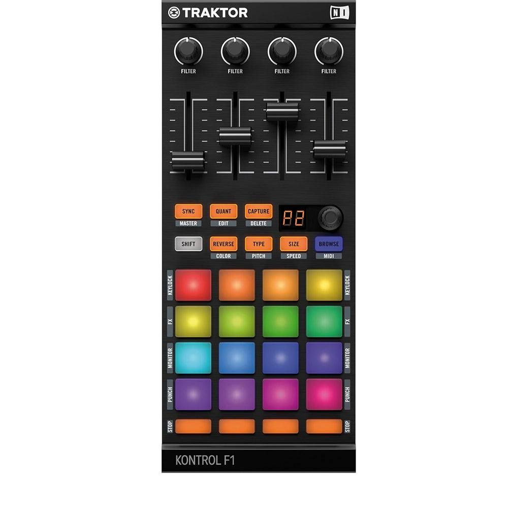 F1 органічно поєднується з будь-яким сетапом Traktor: як доповнення до S2/S4 або разом із мікшером і X1. Працює від USB, не потребує зовнішнього живлення, а продумана логіка шарів (Shift) відкриває швидкий доступ до запису семплів із деки, змін темпу/довжини лупів та керування сценами. Це інструмент для діджеїв, що хочуть розширити сет живою елементною грою, створюючи унікальні перформанси на ходу.