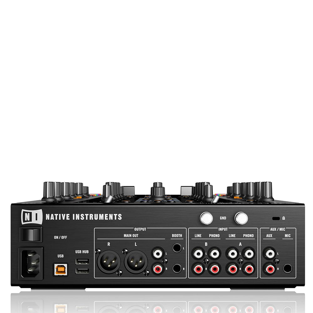 Вбудований 24-біт/96 кГц аудіоінтерфейс забезпечує чистий сигнал на мейн і буф, підтримка DVS дозволяє грати таймкодом з вінілом або CDJ без додаткових коробок. На борту — повний набір підключень (фоно/лінійні входи, мікрофон, AUX), балансні XLR на фронт та окремий Booth, а також двопортовий USB-хаб для підключення контролерів X1/F1. Z2 працює як автономний мікшер і як контролер для Traktor Pro — універсальний центр сетапу для класичного та гібридного діджеїнгу.