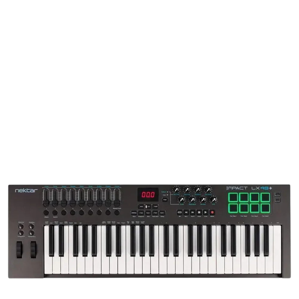 Nektar Impact LX49+ — це 49-клавішна USB MIDI-клавіатура, створена для музикантів і продюсерів, які потребують надійного та функціонального інструменту для студійного та сценічного використання. Клавіші повнорозмірні, чутливі до швидкості натискання, що забезпечує природну динаміку виконання. Контролер підтримує інтеграцію з популярними DAW і дозволяє зручно керувати віртуальними інструментами та плагінами через спеціальні функціональні кнопки, регулятори та колеса Pitch Bend і модуляції.