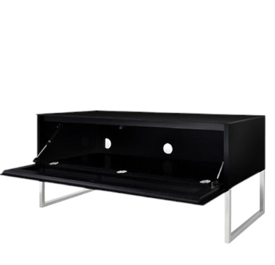 Матеріали: лакований MDF, хромовані сталеві ніжки, передня дверцята зі скла з пропусканням ІЧ-сигналів, задня панель з кабельними отворами