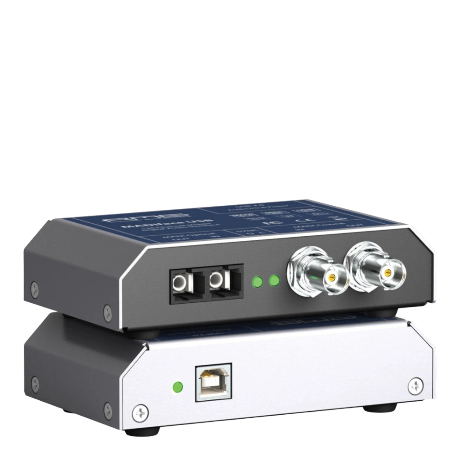 RME MADIface USB — це професійний USB–MADI інтерфейс, призначений для роботи з великими цифровими системами, які використовують протокол MADI (Multichannel Audio Digital Interface). Пристрій забезпечує передачу 128 каналів аудіо (64 входи та 64 виходи) з частотою дискретизації до 192 кГц, гарантуючи стабільну роботу без затримок і втрат сигналу. Інтерфейс повністю сумісний із усіма пристроями, що підтримують MADI, і працює в режимах 56 або 64 канали при 96 кГц. Модель оснащена як оптичними, так і коаксіальними портами, які підтримують фірмову технологію Seamless Redundancy — у разі збою на одному з входів система миттєво перемикає сигнал на резервний канал без переривання роботи.