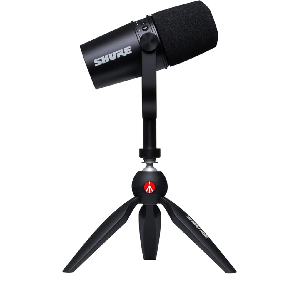 Комплектація набору: MV7+ (black), настільний штатив, кабелі USB-C→USB-C та USB-C→USB-A, пінний вітрозахист, перехідник 5/8"→3/8", документація