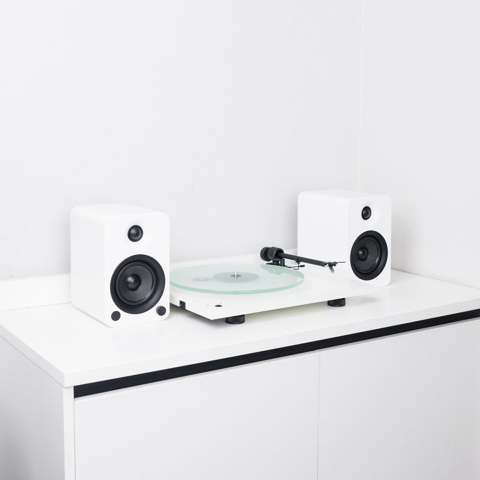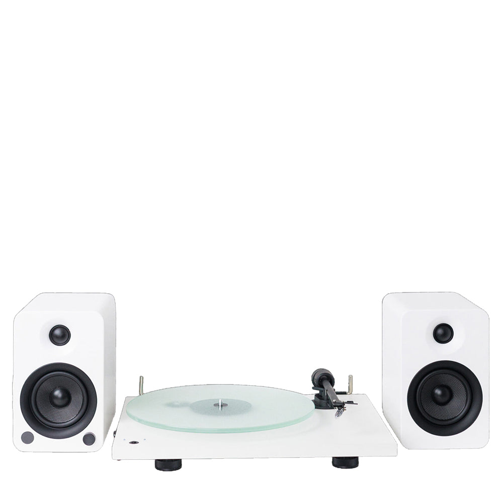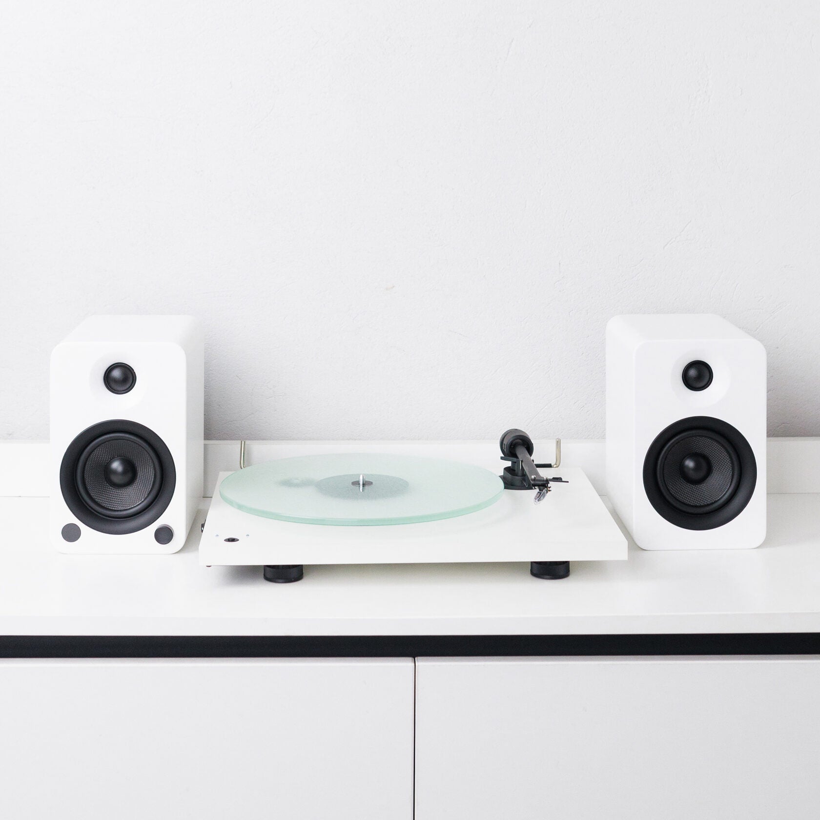 Програвач вінілу Pro-Ject T1 Phono SB OM5e у чорному Piano Black у поєднанні з активною акустикою Kanto YU4 Black утворює готову систему для якісного відтворення вінілових платівок.