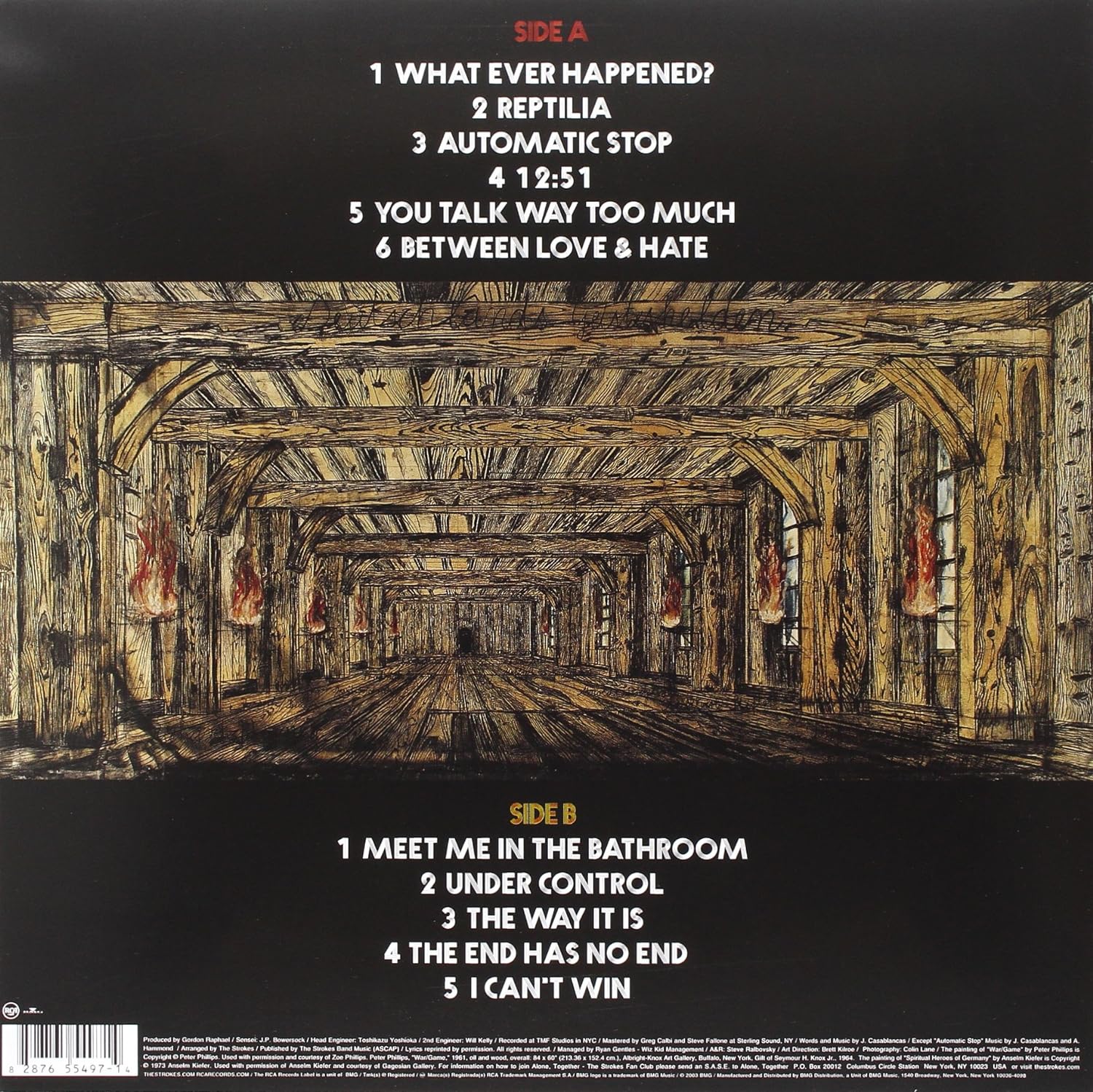Ця вінілова платівка представляє "Room On Fire" – другий студійний альбом американського інді-рок гурту The Strokes. Альбом був випущений 21 жовтня 2003 року. Він вийшов лише через два роки після їхнього надзвичайно успішного дебютного альбому "Is This It", і багато в чому зберіг його фірмове звучання.