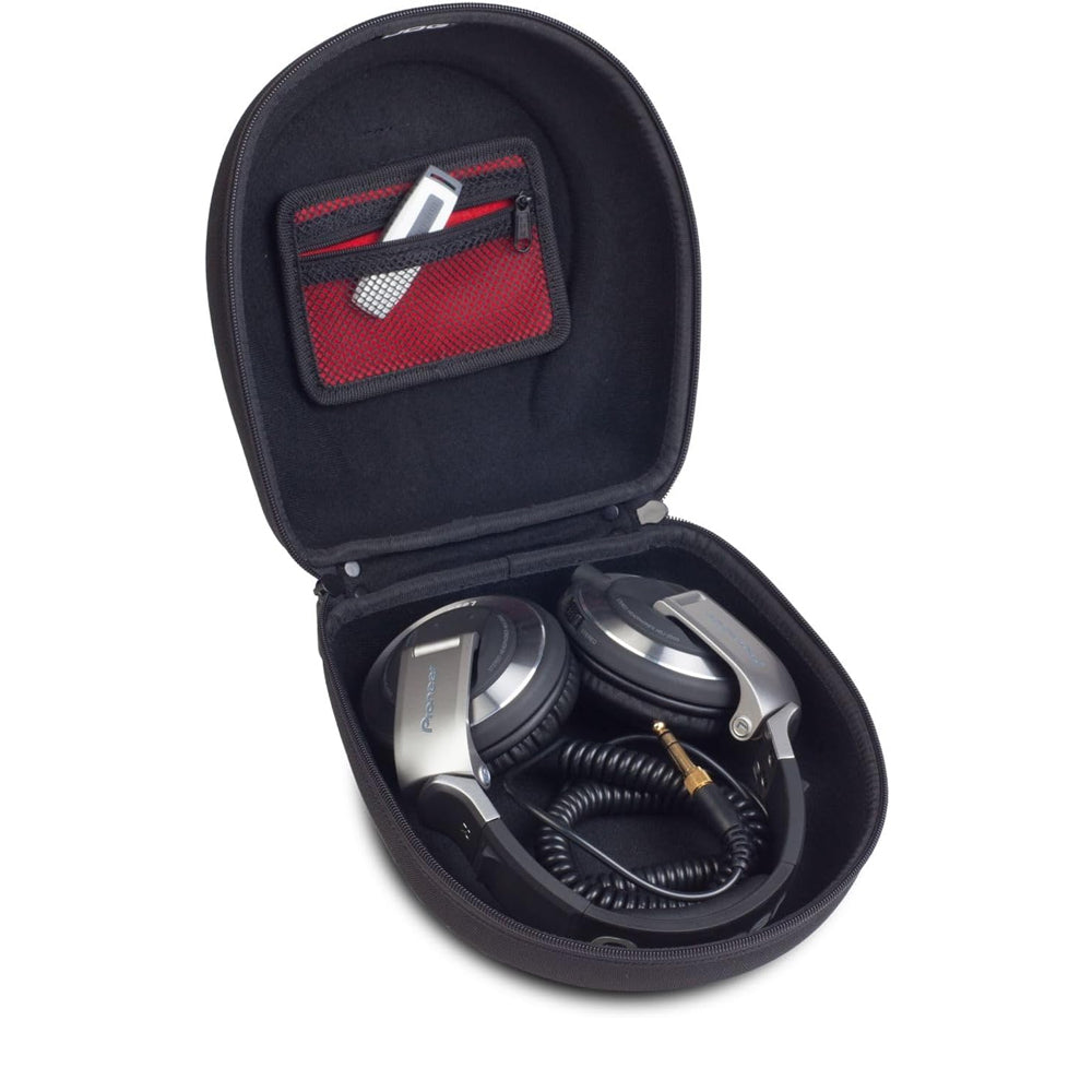 UDG Creator Headphone Case Large — жорсткий кейс для безпечного транспортування та зберігання повнорозмірних DJ- і студійних навушників. Корпус із формованого Durashock EVA тримає геометрію й гасить удари, водовідштовхувальний нейлон захищає від вологи та подряпин, а посилена двостороння блискавка витримує інтенсивне використання. Усередині — м’яка підкладка та акуратне компонування, щоб обод і чашки не терлися в дорозі; розраховано під великі on-ear/over-ear моделі, передбачено місце для кабелів та адаптерів.